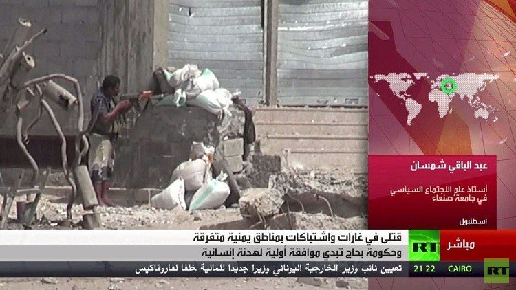 من جهة أخرى أبدت الحكومة اليمنية، من مقرها المؤقت بالرياض، موافقة أولية على إبرام مقترح هدنة إنسانية مع جماعة الحوثي وقوات الرئيس اليمني السابق علي عبدالله صالح.