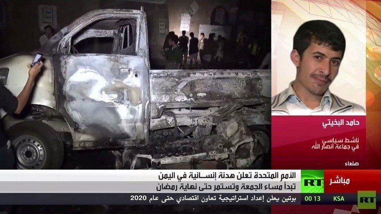 وكانت الأمم المتحدة أعلنت، الخميس 9 يوليو/تموز، التوصل لاتفاق بين أطراف النزاع في اليمن على هدنة إنسانية تبدأ ليلة الجمعة وتستمر حتى عيد الفطر.
