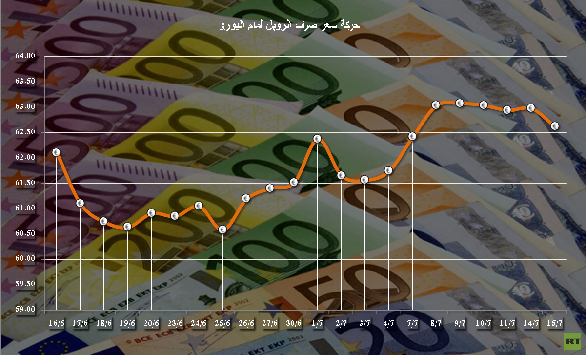 كما حدد سعر صرف اليورو الرسمي عند مستوى 62.6239 روبل.