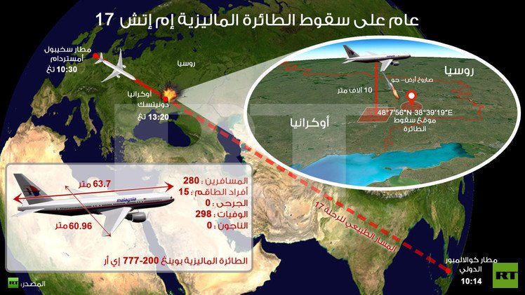 نفى متحدث باسم النيابة العامة في هولندا توصل المحققين الدوليين في كارثة الطائرة الماليزية بشرق أوكرانيا منذ عام، إلى استنتاجات محددة بشأن هوية الأشخاص المسؤولين عن إسقاط الطائرة.