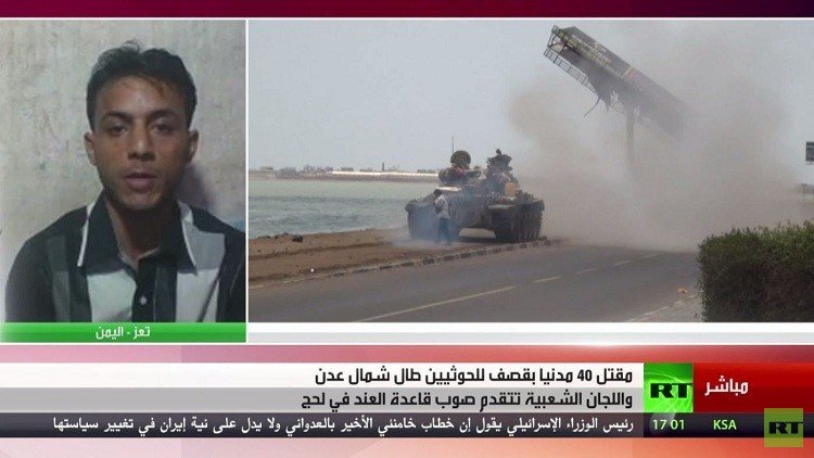 هذا وأفادت مصادر لـRT بأن اللجان الشعبية الموالية للرئيس اليمني عبد ربه منصور هادي أعلنت السيطرة على معسكر لبوزة في لحج جنوبي اليمن.
