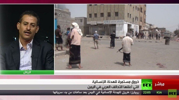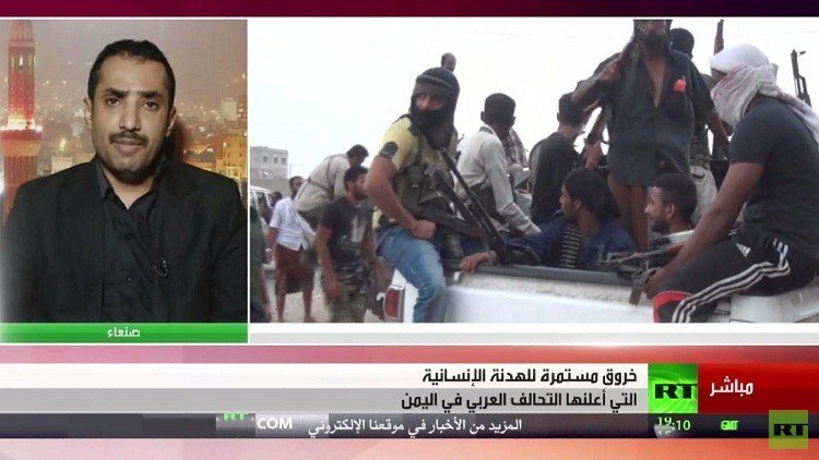 إلى ذلك أكد عضو اللجنة الثورية العليا التابعة لجماعة أنصار الله توفيق الحميري في حديث لـ RT من صنعاء، رفض الحوثيين للهدنة التي أعلنها التحالف متهما إياه بالتغطية على هجمات شنها على مواقع مدنية في تعز أسفرت عن مقتل العشرات.