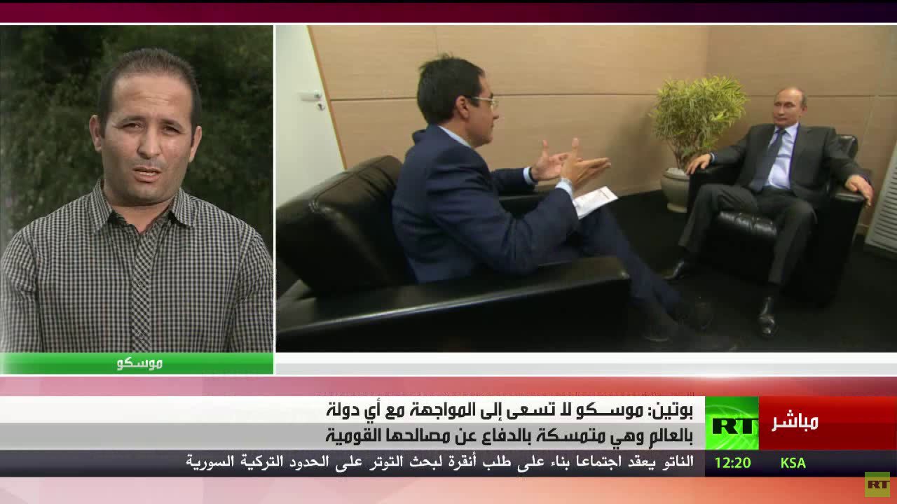 وفي مقابلة مع قناة RTS التلفزيونية السويسرية قال بوتين: "ليس من مصلحة روسيا على الإطلاق السعي إلى مواجهة مع الدول الأخرى، لكننا مضطرون للدفاع عن مصالحنا ونحن سنفعل ذلك طبعا".