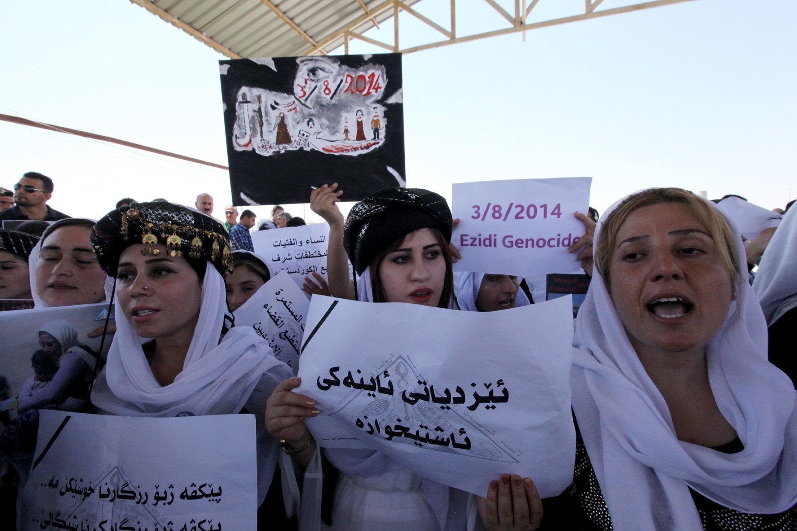 بعد مرور سنة عام على سيطرة "داعش" مدينة سنجار، شهدت المنطقة تظاهرات للأيزديين تطالب المنظمات المدنية والأمم المتحدة بالإسراع بإنقاذ ما تبقى من نساء أسيرات بيد التنظيم.
