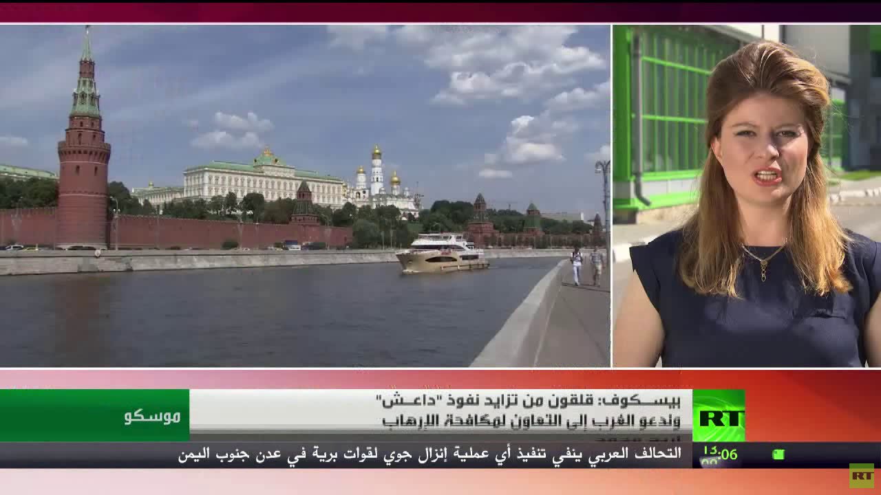 وفي وقت سابق من الثلاثاء أعرب بيسكوف عن قلق الكرملين العميق من تنامي نفوذ تنظيم "داعش" الإرهابي، داعيا الدول الأوروبية والولايات المتحدة إلى التعاون في مكافحة الإرهاب.