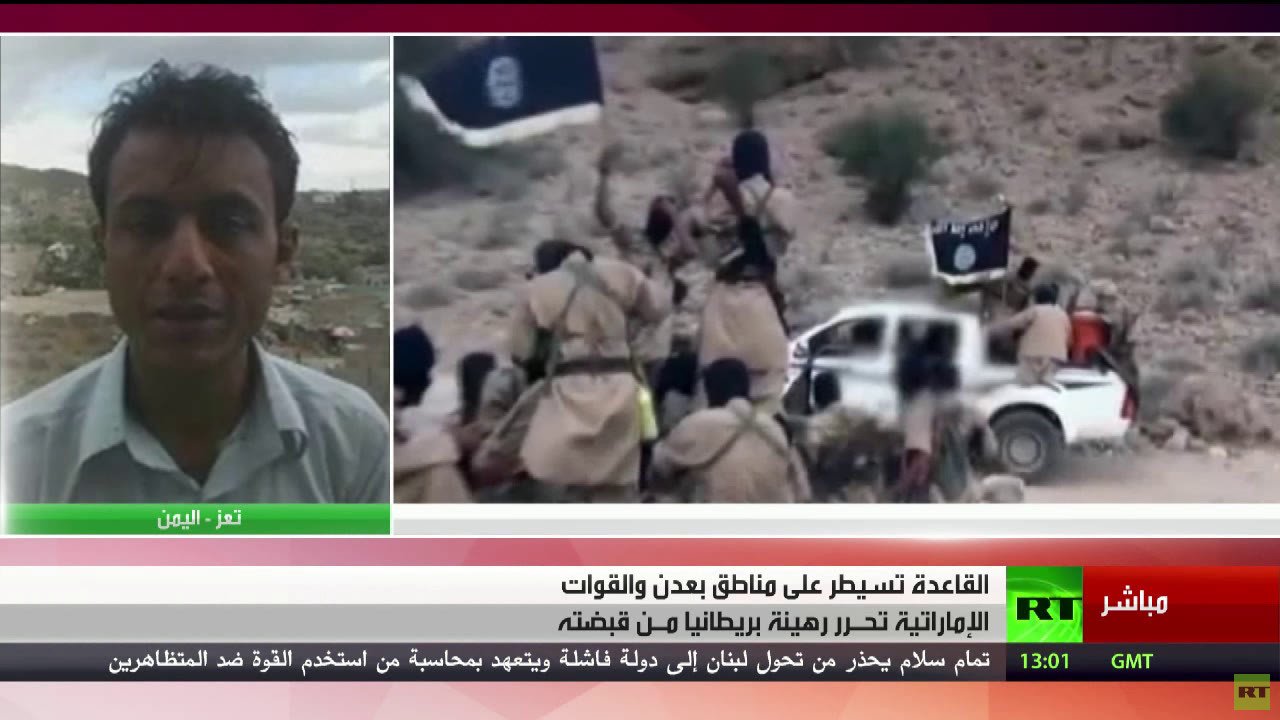 وفي سياق آخر، نفى مراسلنا الأخبار الرائجة حول سيطرة تنظيم القاعدة على مناطق في عدن، مؤكدا أن أعلام التنظيم رفعت فوق منازل سكنية في المدينة فقط، وقال إن القوات الموالية لهادي تعمل على تهدئة الأوضاع في التواهي وفي ميناء عدن.