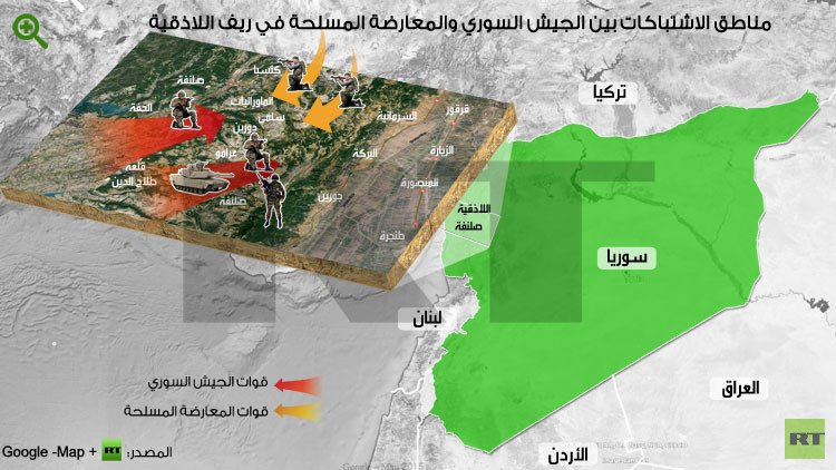 وفي ريف اللاذقية الشمالي قال ناشطون إن الجيش أوقف عملياته بشكل مؤقت باتجاه منطقة الجب الأحمر والتلال المحيطة بها مثل تلال الغنمة والغدر وعين سامور.