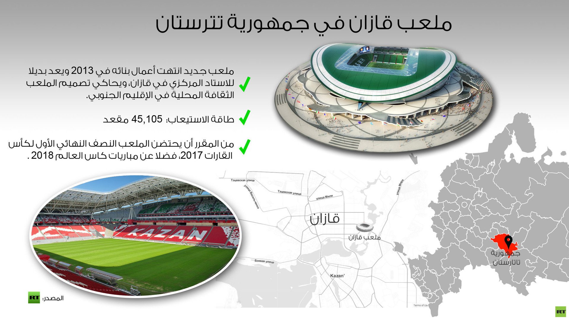 ومن المقرر أن تستضيف قازان 6 مباريات في نهائيات المونديال، التي تقام بين الـ14 من يونيو/حزيران وحتى الـ15 من يوليو/تموز في 12 ملعبا في 11 مدينة روسية.