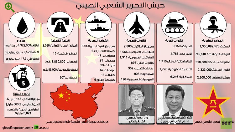 ويعد جيش التحرير الشعبي الصيني الأكبر في العالم، حيث يبلغ تعداده، بحسب مختلف التقديرات نحو 2.3 مليون شخص.
