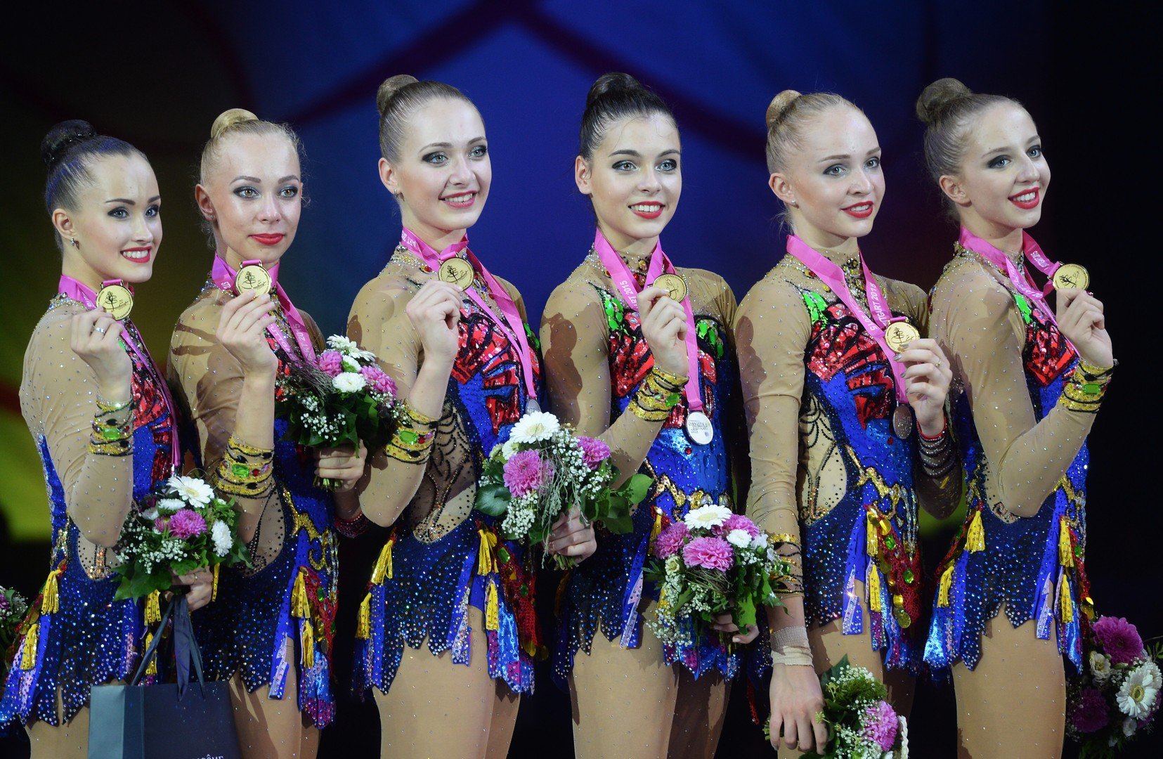 وحصلت روسيا التي مثلتها كل من (ديانا بوريسوفا، داريا كليشيفا، أناستاسيا ماكسيموفا، سوفيا سكومورخ، أناستاسيا تاتاريفا، ماريا تولكاتشيفا)، على المركز الأول برصيد (36,266) نقطة، تاركة الميدالية الفضية للفريق البلغاري الذي احتل المركز الثاني برصيد (35,583) نقطة، أما الميدالية البرونزية فقد كانت من نصيب إسبانيا برصيد (34,900) نقطة.