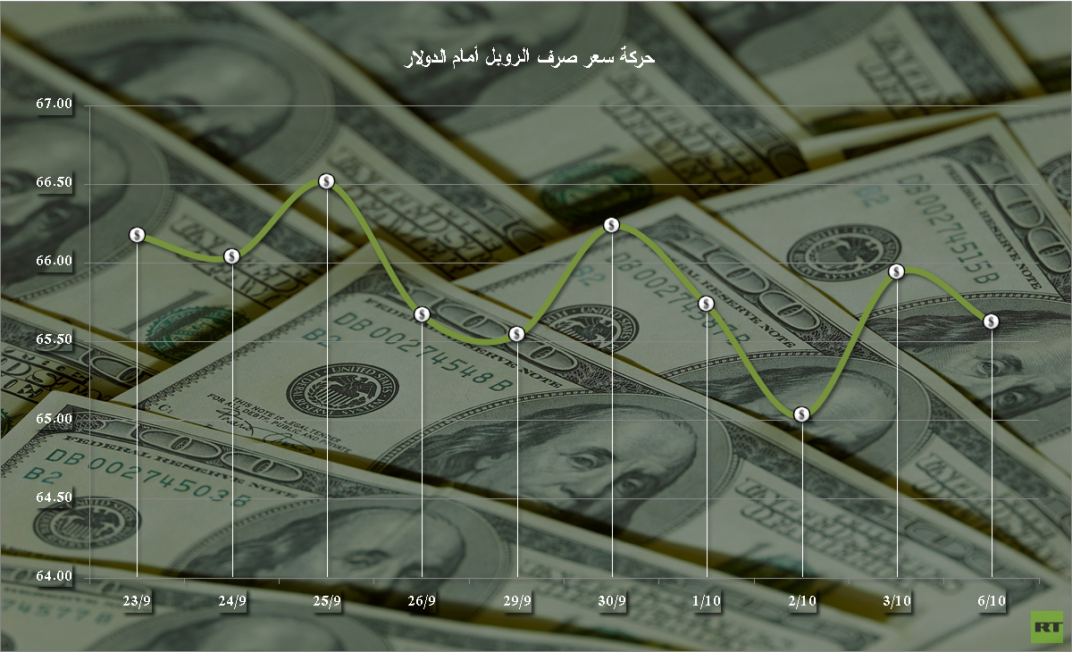 وحدد المصرف المركزي الروسي سعر صرف الدولار الرسمي ليوم الثلاثاء 6 أكتوبر/تشرين الأول عند مستوى 65.6248 روبل.