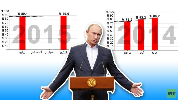 حقق مستوى رضى المواطنين الروس عن عمل رئيسهم فلاديمير بوتين رقما قياسيا جديدا في أكتوبر/تشرين الأول الجاري بنسبة 89.9%.