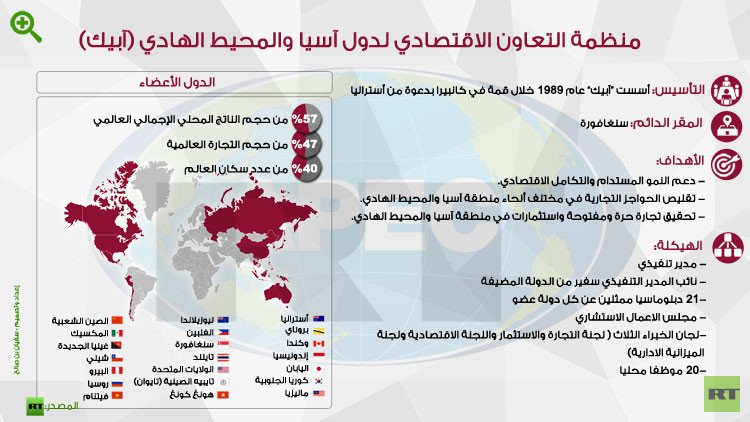 يشار هنا إلى أن "إبيك" تأسست عام 1989 بدعوة من أستراليا، بغرض تشجيع التجارة الحرة والتعاون الاقتصادي في منطقة آسيا ودول المحيط الهادي.