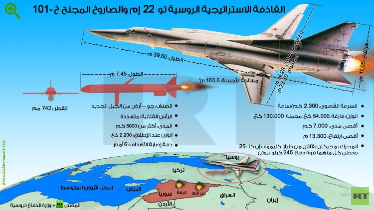 بينت مقاطع الفيديو التي عرضتها وزارة الدفاع الروسية استخدام طائرتي "تو – 95" و"تو - 160" الاستراتيجيتين الروسيتين صاروخ "إكس 101" المجنح من الجيل الجديد.