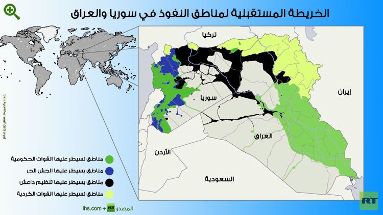 ويقول تقرير أصدره معهد "IHS" "في غضون بضعة أشهر، فقد تنظيم داعش السيطرة على أراض واسعة في سوريا والعراق في عام 2015، حيت انتهى به الأمر إلى أقل من 14% من المساحة، التي كان يسيطر عليها في 2014".