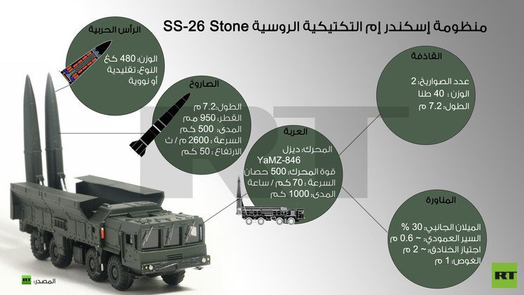 تجدر الإشارة إلى أن منظومة "إسكندر-إم" الصاروخية تستطيع إصابة أهداف صغيرة ومجموعات أهداف متنوعة على مسافات تصل إلى 500 كيلومتر.