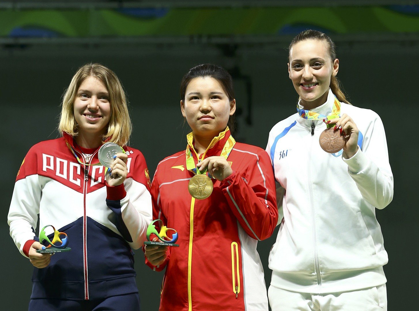أحرزت الروسية فيتالينا باتساراشكينا فضية منافسات مسدس ضغط الهواء من 10 أمتار بالرماية فيما ذهبت الذهبية للصينية زهانغ مينغ شو ضمن دورة ألعاب ريو الأولمبية الأحد 7 أغسطس/آب.