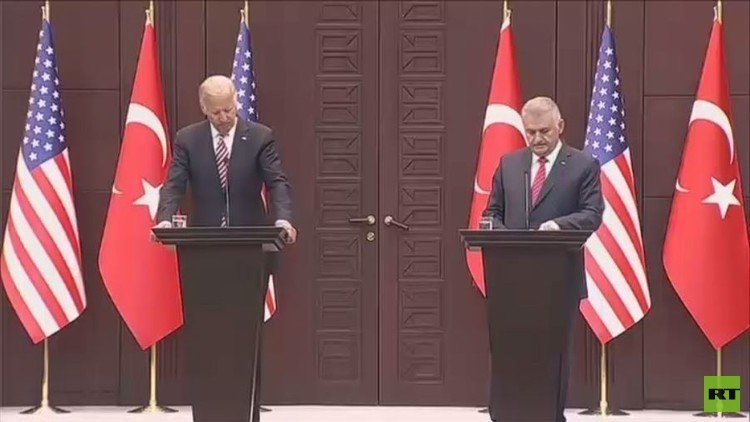 من جانبه أكد نائب الرئيس الأمريكي جو بايدن أن واشنطن تدعم تركيا كحليفة لها بالكامل، وأن قوات الاتحاد الديمقراطي ووحدات حماية الشعب لن تحصل على أي دعم من الولايات المتحدة في حال انتقالها إلى غرب الفرات، قائلا إن واشنطن لن تقبل بحل وسط بشأن أمن الحدود التركية ووحدة سوريا. وأضاف أن الجانب الأمريكي أبلغ بذلك الجهات المعنية في سوريا.