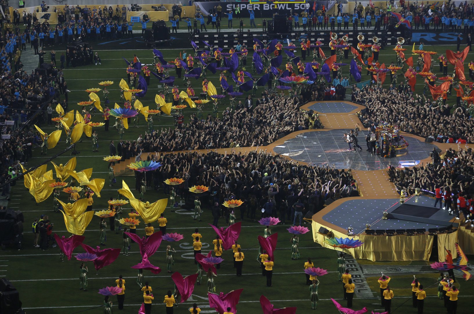 وكانت المغنية بيونسيه والمغني برونو مارس وفريق كولدبلاي الغنائي هم من شارك في الاستعراض الغنائي بين شوطي المباراة النهائية في العام الماضي.