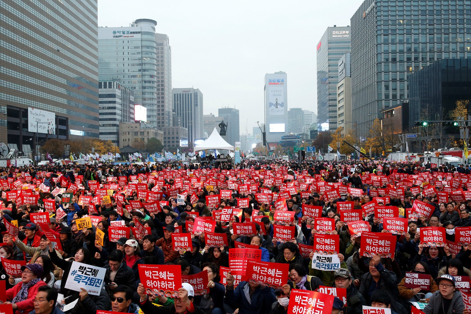 تظاهر مئات الآلاف من الكوريين الجنوبيين السبت 19 نوفمبر/تشرين الثاني، في شوارع سيئول، مطالبين باستقالة الرئيسة باك كون هيه، على خلفية فضيحة الفساد وإساءة استخدام النفوذ.