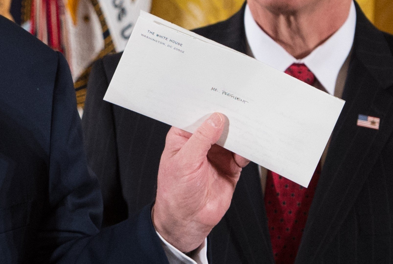 وينص تقليد أمريكي قديم على أن يترك الرئيس المنتهية ولايته رسالة لخلفه لا يكتشف وجودها إلا حين ينتقل إلى المكتب البيضاوي.