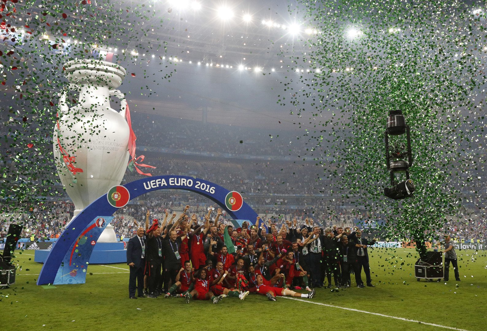 دخل منتخب البرتغال تاريخ بطولة كأس أمم أوروبا لكرة القدم، بإحرازه لقب النسخة الـ 15 للبطولة، إثر فوزه على فرنسا (1-0) بعد تمديد النهائي الذي جرى الأحد 10 يوليو، على ملعب فرنسا.