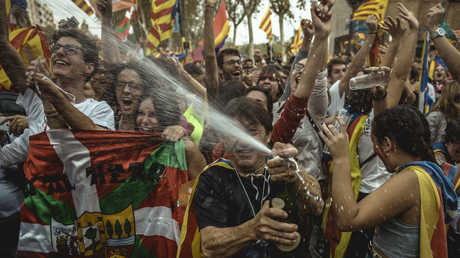 خرج الآلاف من سكان كتالونيا إلى الشوارع احتفالا بإعلان برلمان الإقليم الانفصال عن إسبانيا.