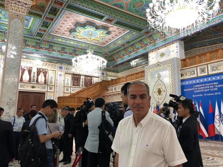 يرحب بكل رئيس على حدة، يربِّت على أكتاف بعضهم، ويطيل عملية المصافحة مع بعضهم الآخر، يصحح لمن أخطأ جهة الوقوف لالتقاط الصورة التذكارية، وأخيرا يشير للجميع إلى مكان قاعة الاجتماع... كل ذلك يحدث أمام عدسات الكاميرات، التي تنقل على الهواء مراسم افتتاح مؤتمر القمة الخامس لـ "التفاعل وإجراءات بناء الثقة في آسيا" (CICA).
