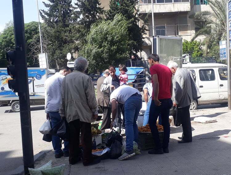 تقول سمية وهي ترتّب باقات البابونج البلدي: "يلي تغيّر بالسوق أشكال البياعين من أصحاب المحلات تحديدًا بعد ما انفرض عليهم يلبسوا الكفوف والكمامات، والأسعار يلي ارتفعت بشكل جنوني، أما نحنا أصحاب البسطات ما تغيير علينا شي، بصعوبة قدرت أعرف أبو أحمد صاحب الملحمة يلي بفرد بضاعتي على باب محلو بعد ما حط الكمامة الزرقا يلي ما بدلها من 3 أسابيع. وقلتلو يومها: شو أبو أحمد الله هداك وحطيت النقاب ولبست الكفوف، باقي تنزّل شوي بسعر اللحمة وتبيع الناس بنور الله ومصيرك الجنة بإذن الله"