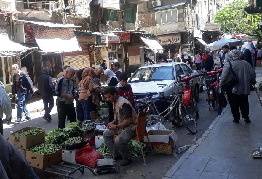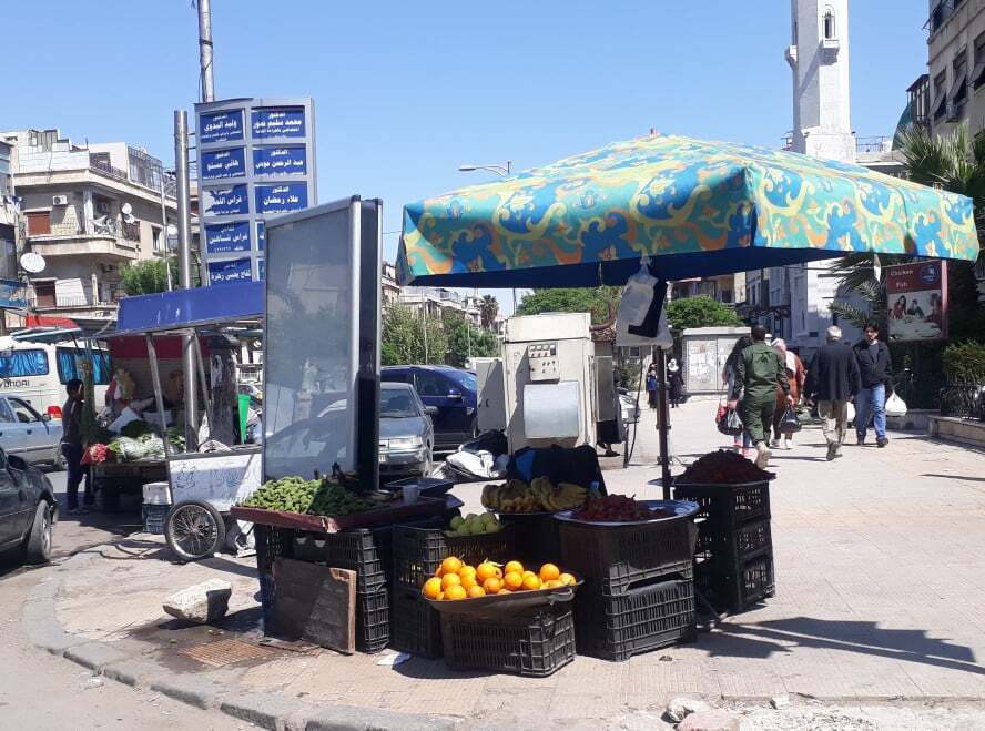 تجلس سمية، وهي سيدة في الأربعينيات، كلّ يوم في سوق الخضرة بحي القزازين في دمشق وأمامها بسطة لبيع الخضار الموسمية والأعشاب المتنوعة التي تكثر في هذا الفصل من كل عام، وسط حارة شعبية تمتد بين شارع بغداد وحي العمارة، والتي تعتبر مركزًا تجاريًا هامًا لبيع الخضار والفواكه والمواد الغذائية شرق العاصمة دمشق، ما جعلها أقل تأثّرًا بقرار الحظر الجزئي الذي أقرته الحكومة السورية كإجراء وقائي لمنع انتشار فيروس كورونا الذي انتشر في جميع بلاد العالم.