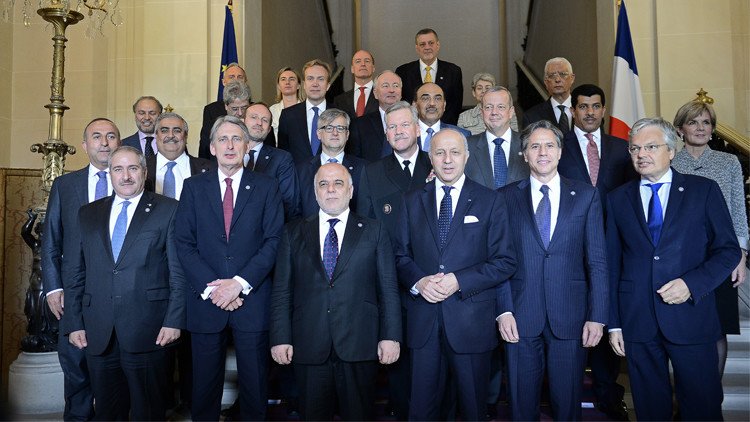 انعقد هذا الاجتماع برئاسة وزير خارجية فرنسا لوران فابيوس ورئيس وزراء العراق حيدر العبادي بعد ايام على سيطرة "الدولة الاسلامية" على مدينة الرمادي مركز محافظة الأنبارالعراقية، التي تبعد حوالي 100 كلم عن العاصمة بغداد. انطلاقا من هذا اتهم العبادي دول الائتلاف بعدم اتخاذ الاجراءات اللازمة وعدم ادراكها للأوضاع. وقال "يجب على بلدان الائتلاف القيام بنشاط سياسي كبير. نحن نريد ان نستوضح لماذا هذا العدد الكبير من الارهابيين من العربية السعودية ودول الخليج ومصر والبلدان الأوروبية. إذا كانت المسألة ترتبط بالوضع السياسي في العراق، لماذا يقاتل الأمريكيون والفرنسيون والألمان في العراق".