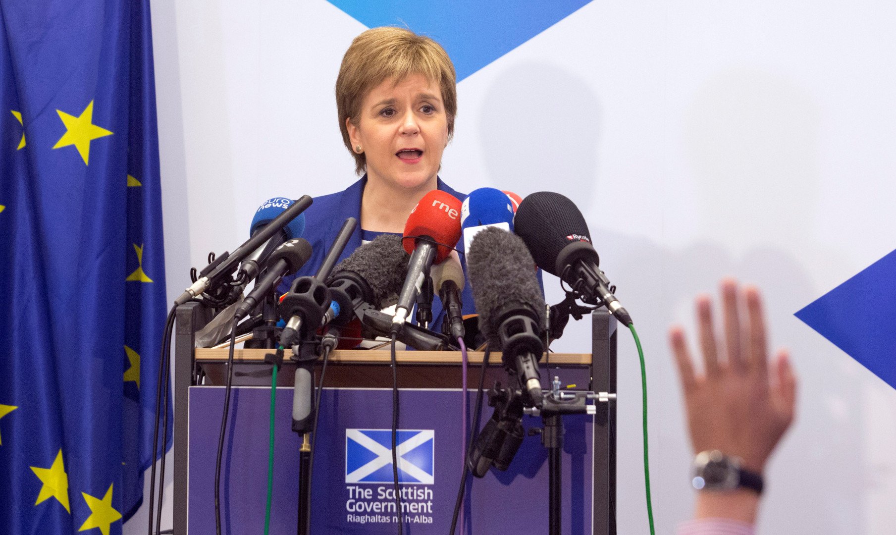 تسبب تعيين تيريزا ماي التي تعارض بشدة إمكانية إعادة النظر بنتائج الاستفتاء الذي أُجري بشان خروج بريطانيا من الاتحاد الأوروبي، في تصعيد التوتر في العلاقات بين لندن وسلطات اسكتلندا. فقد طلبت رئيسة الحكومة المحلية نيكولا ستيرجين من لندن منحها شروطا خاصة تسمح لاسكتلندا بالبقاء داخل الاتحاد الأوروبي. وبعكسه ستضطر إلى إجراء استفتاء ثانٍ بشأن الاستقلال عن المملكة المتحدة. ولكن موقف ماي لم يتغير من قضية "الطلاق" مع بروكسل، وتتوجه يوم الـ 15 من الشهر الجاري إلى أدنبرة في محاولة منها لتسوية الخلاف.