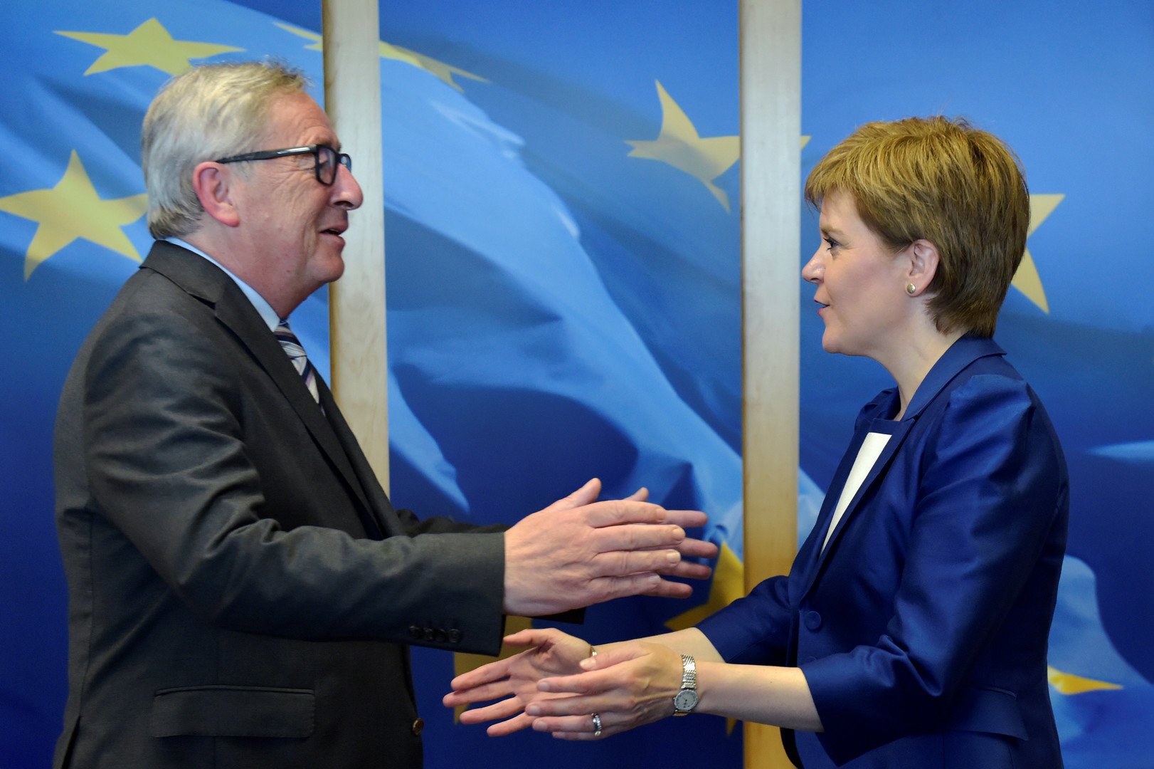 ويذكر أن نيكولا ستيرجين كانت قد زارت بروكسل في نهاية يونيو/حزيران المنصرم لمناقشة صفة اسكتلندا في الاتحاد الأوروبي مع مسؤولي الاتحاد متجاهلة موقف لندن. وقال رئيس المفوضية الأوروبية جان-كلود يونكر قبل لقائه رئيسة الحكومة المحلية في اسكتلندا، إن "من حق اسكتلندا أن تستمع بروكسل لصوتها، وسوف أصغي باهتمام إلى جميع النقاط التي ستطرحها. ولكن ليس بمقدوري ولا بمقدور دونالد توسك التدخل في الشؤون الداخلية لبريطانيا". أما ستيرجين، فقد صرحت عقب لقائها يونكر بأنه "يتعاطف مع موقف اسكتلندا التي يمكن أن تطرد من الاتحاد الأوروبي رغما عن إرادتها".