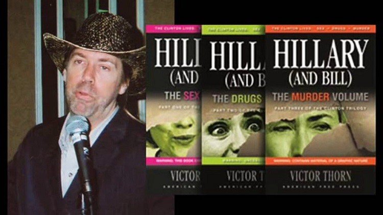 في الأول من أغسطس/آب، توفي الصحافي فيكتور ثورن (44 سنة) مؤلف كتاب يتضمن انتقادات لعائلة كلينتون. كتب ثورن أن بيل وهيلاري حوَّلا أركنساس، التي بدآ فيها مشوارهما إلى مركز لتجارة الكوكايين. كما أشار إلى مقتل أكثر من 130 شخصا على يد عصابات مرتبطة بعائلة كلينتون.