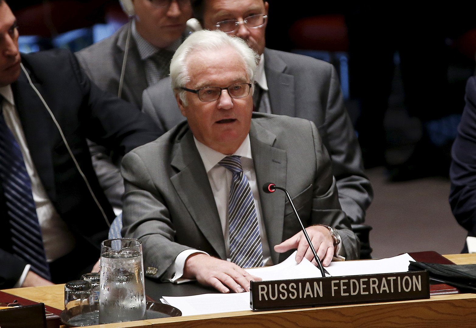 ومجلس الأمن الدولي عقد جلسة طارئة بطلب من روسيا. ولكن مندوبة الولايات المتحدة سامانثا باور لم تدخل قاعة الجلسة إلا بعد أن أنهى مندوب روسيا فيتالي تشوركين كلمته، لأن الجلسة بحسب رأيها "مهزلة"، وأن طلب موسكو بعقد جلسة طارئة "خدعة فريدة ونفاق كامل لاأخلاقي هدفه الضحك على الذقون". وأضافت أن الولايات المتحدة تجري التحقيقات اللازمة بالحادث، وأعربت عن أسفها لوقوع "ضحايا بشرية".