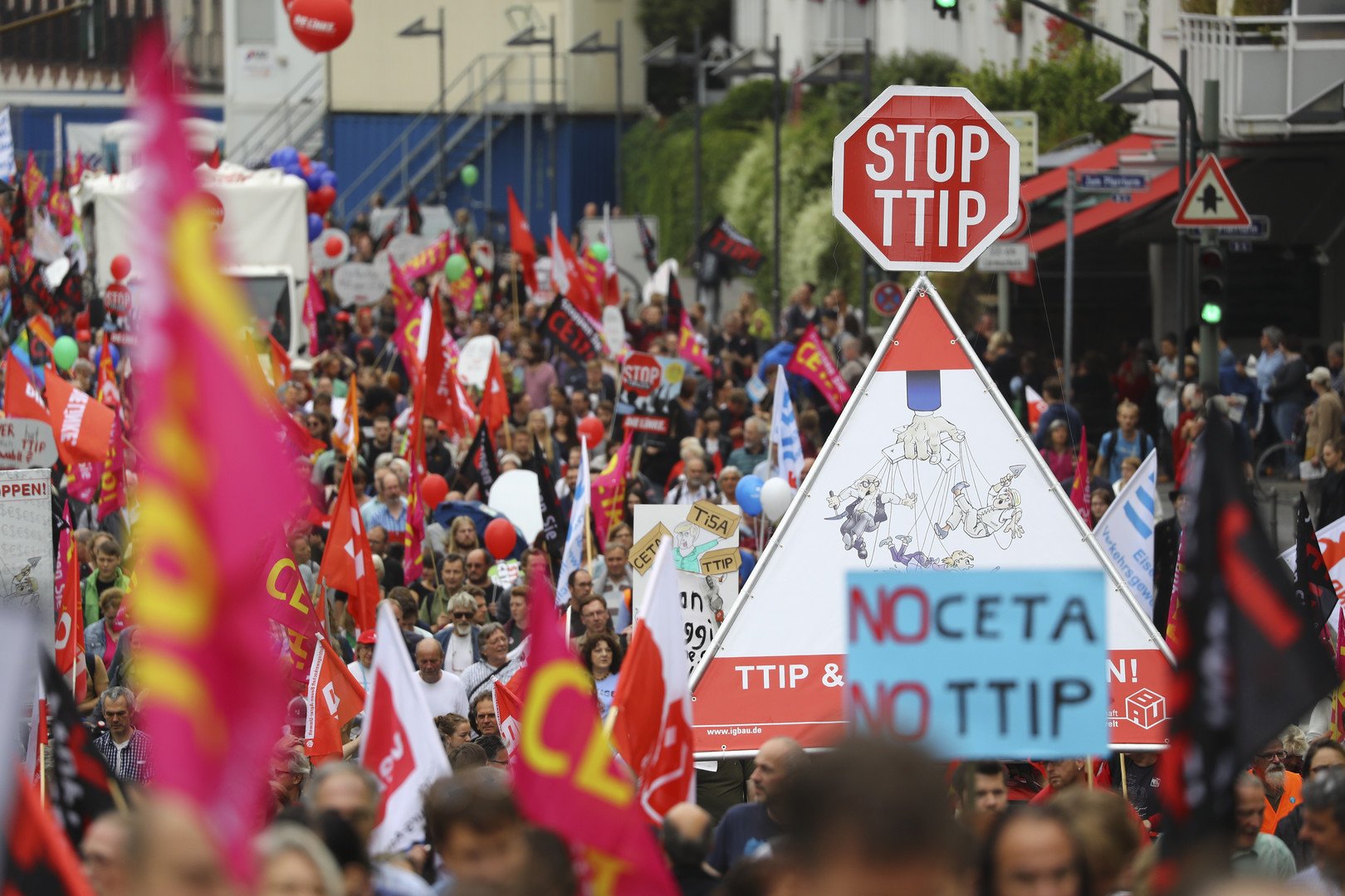 يركز الأوروبيون اهتمامهم اليوم على اتفاقيتين: الأولى عن التجارة الحرة مع كندا، والثانية مع الولايات المتحدة حول "الشراكة التجارية والاستثمار عبر الأطلسي"، التي يعارضها عدد من ساسة أوروبا ونشطائها. وقد نظمت هذه التظاهرات في بروكسل يوم الثلاثاء 20 سبتمبر/أيلول الجاري، وقبلها خرج 300 ألف مواطن ألماني في تظاهرة احتجاجا على الاتفاقيتين.