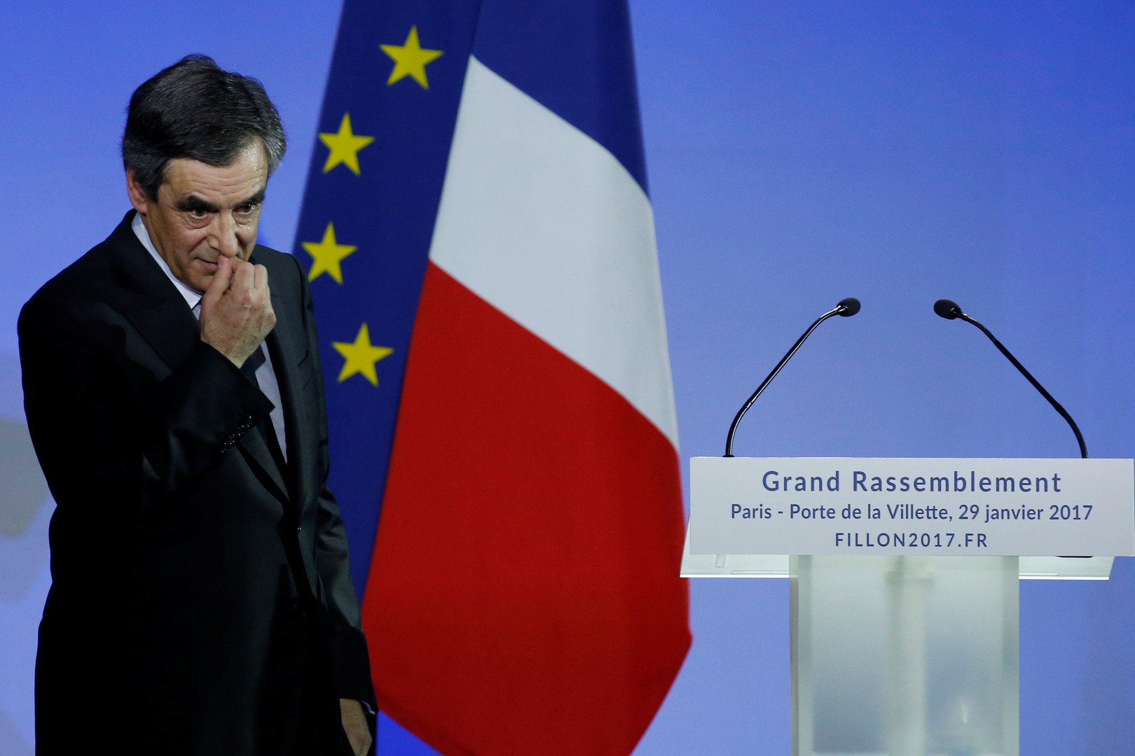 لكن فضيحة أثيرت في الأسبوع الماضي حوله قد تمنعه من دخول الإليزيه، حيث تبين أن زوجته سجلت في المجلس الوطني كمساعدة له وكانت تتلقى مرتبا عاليا، من دون أن تقوم بأي عمل. بيد أن فيون فند هذه الاتهامات، مؤكدا أن زوجته هي يده اليمنى. ومع ذلك، فإذا رفعت دعوى ضده فسينسحب من المنافسة على كرسي الرئاسة.