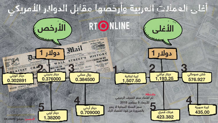 ابحث عن عملة بلدك في قائمة الأغلى والأرخص مقابل الدولار