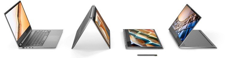 جهاز Lenovo Yoga C930، كمبيوتر محمول خفيف الوزن معدني، يحتوي على معالج من إنتل، Core i5 أو Core i7 من الجيل الثامن، وعلى ذاكرة دخول عشوائية تأتي بـ 8GB أو 16GB، وسعة تخزين تبدأ بـ 256GB وتصل إلى 1TB.