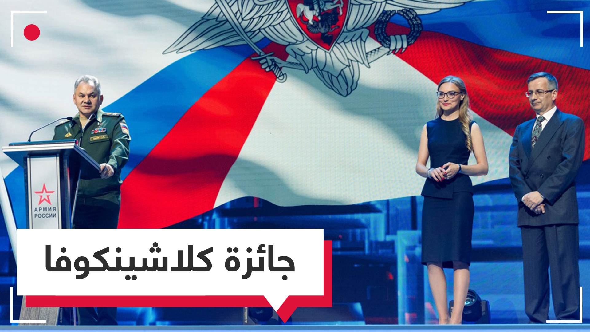 "آنسة رهيفة تحدث المشاهدين عن أحدث الأسلحة" جائزة "أفضل اللقطات" لكلاشينكوفا بمسابقة "ميديا إس" الروسية مقدمة البرنامج آنا كنيشينكو تسلمت الجائزة من وزير الدفاع سيرغي شويغو