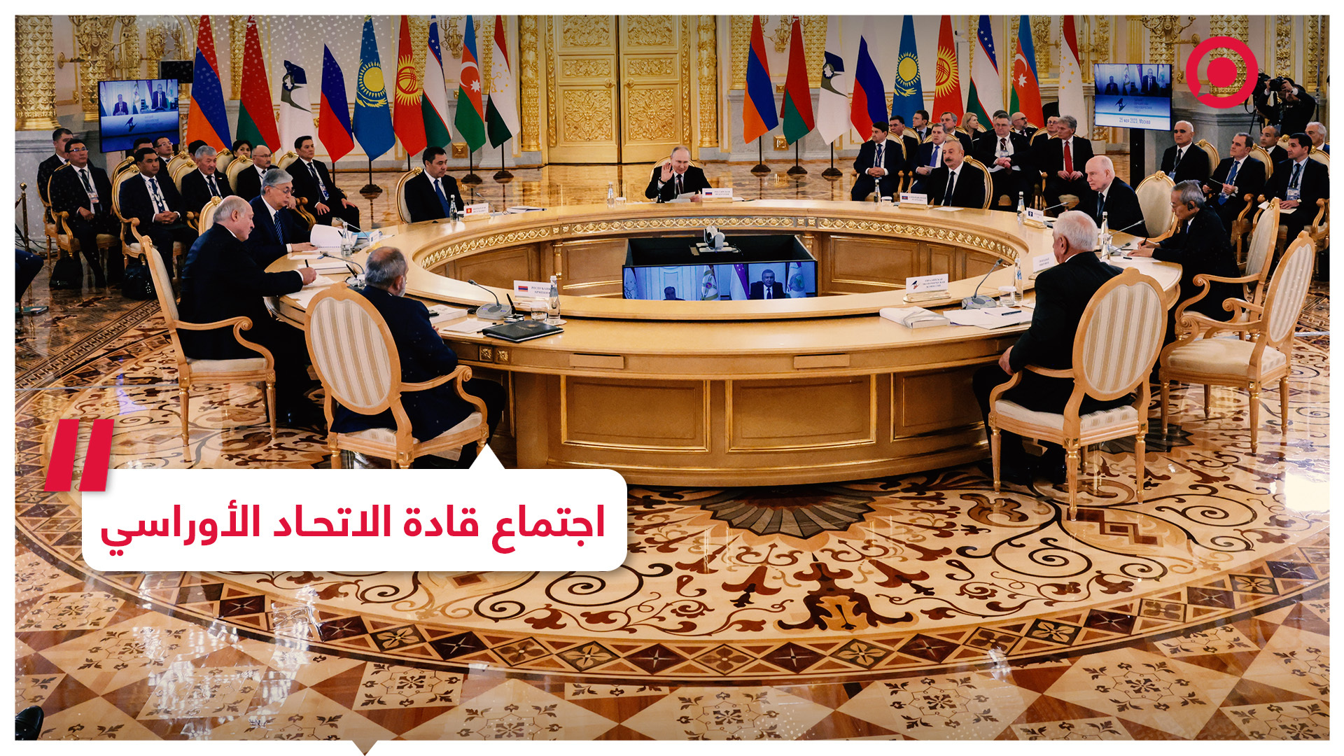 لقطات من بدء اجتماع قادة الاتحاد الأوراسي، الذي يضم بيلاروس وأرمينيا وكازاخستان وقرغيزستان وروسيا، اليوم الخميس في موسكو.