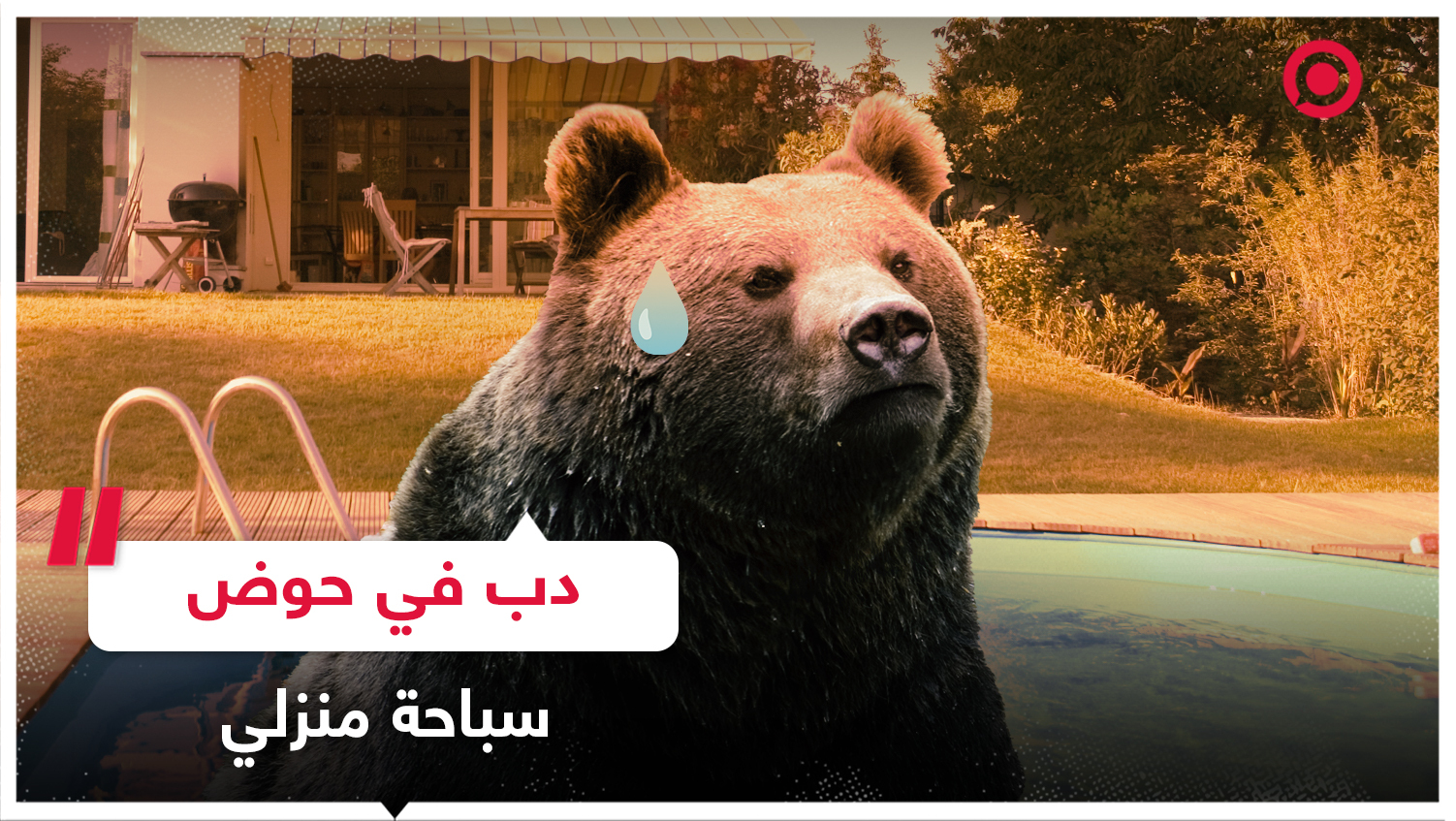دب يغطس في حوض سباحة منزلي هربا من الحر الشديد