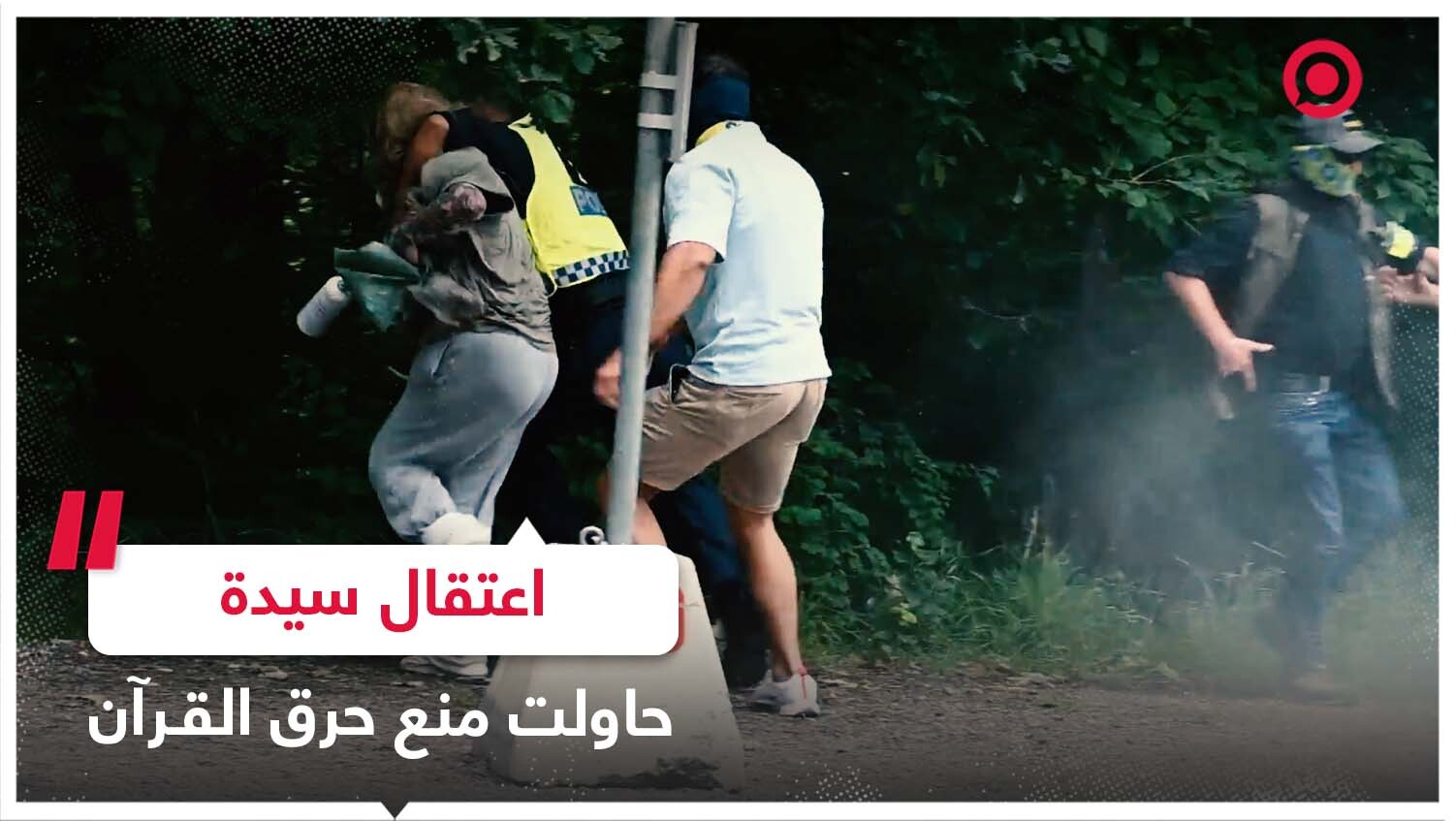 الشرطة السويدية تعتقل سيدة حاولت منع سلوان موميكا من حرق المصحف أمام السفارة الإيرانية في العاصمة السويدية ستوكهولم.