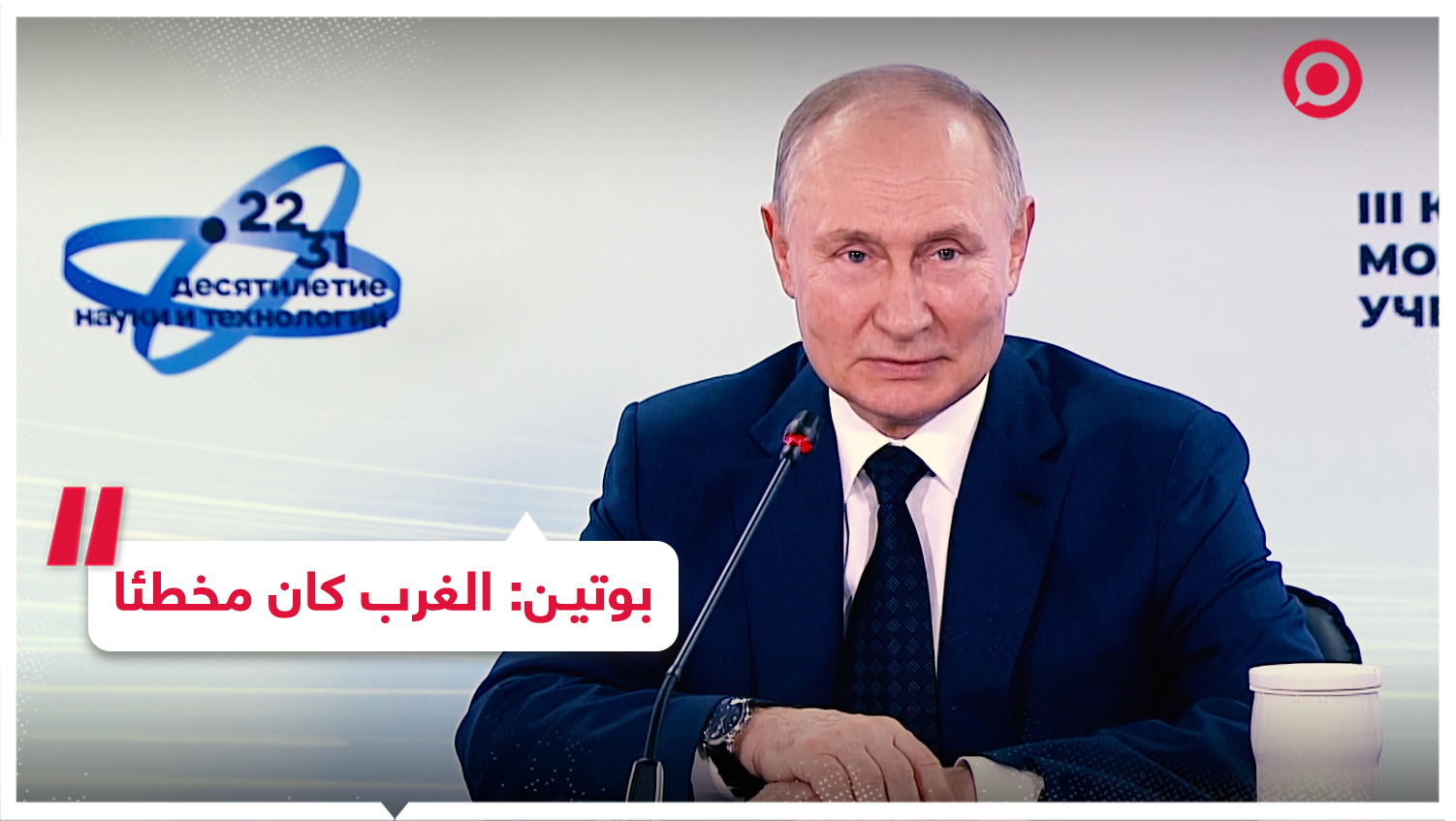 الرئيس الروسي فلاديمير بوتين خلال مؤتمر "العلماء الشباب"، يؤكد أن الغرب كان مخطئا حين ظن أن روسيا لن تتحرر من اعتمادها على تقنياته.