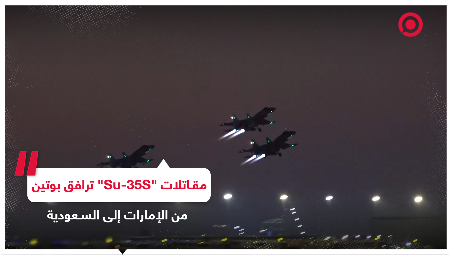 لقطات لطائرات "Su-35S" التابعة للقوات الجوية الروسية وهي ترافق طائرة الرئاسة الروسية في طريقها من الإمارات العربية المتحدة إلى المملكة العربية السعودية.
