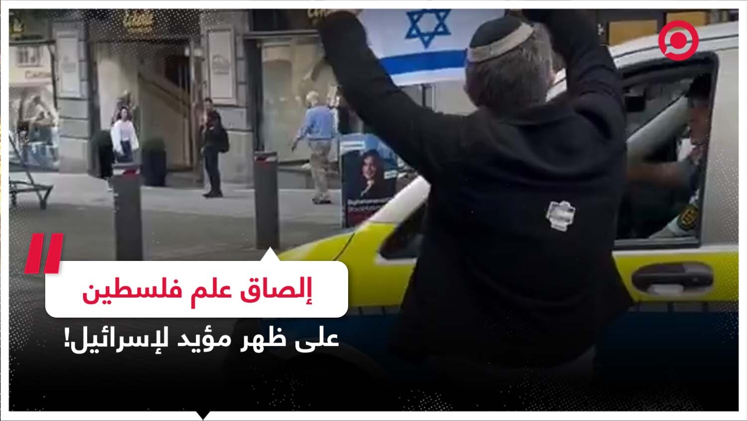 مشاهد لرجل يرفع علم إسرائيل في شوارع ألمانيا وعلى ظهره علم فلسطين دون علمه!