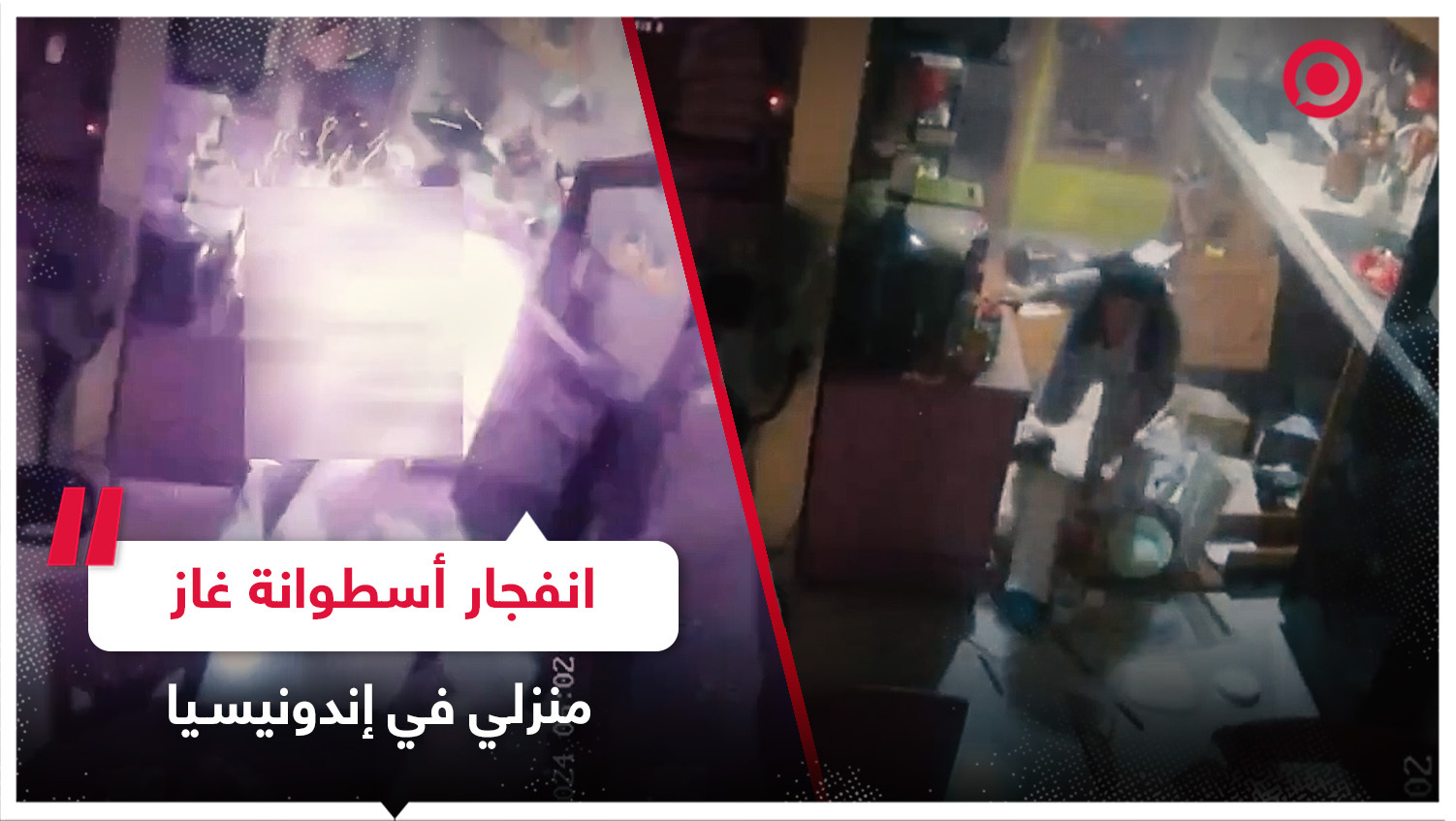 كاميرا مراقبة توثق لحظة نجاة امرأة جراء انفجار أسطوانة غاز داخل مطبخ بإندونيسيا