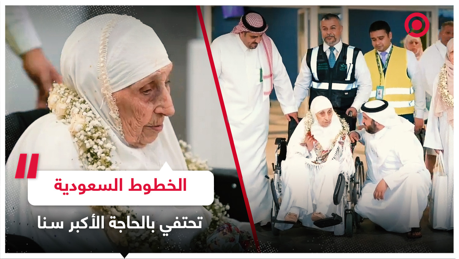 عمرها 130 عاما.. الخطوط الجوية السعودية تنشر مشاهد توثق لحظة الاستقبال والترحيب بأكبر الحجّاج سنا، الحاجّة الجزائرية سارهودا ستيتي، بمطار الملك عبدالعزيز الدولي بمدينة جدة.