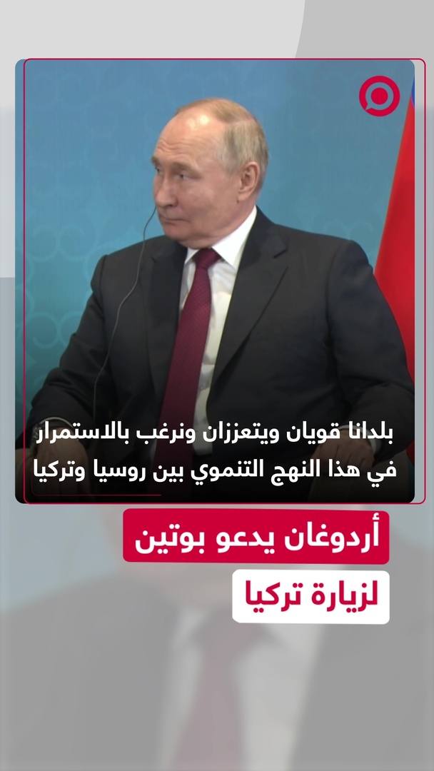 "بلدانا قويان ويتعززان ونرغب بالاستمرار في هذا النهج التنموي بين روسيا وتركيا".. الرئيس التركي رجب طيب أردوغان يدعو الرئيس الروسي فلاديمير بوتين لزيارة تركيا