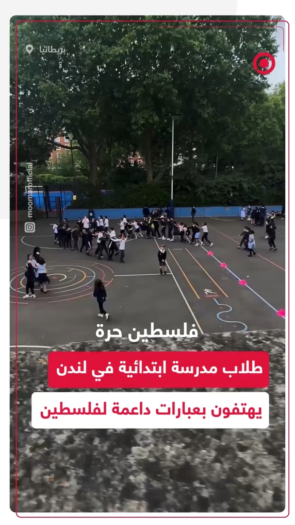 "فلسـ،ـطين حرة".. طلاب مدرسة ابتدائية ينظمون احتجاجا عفويا داعما لفلسـ،ـطين داخل مدرستهم في مدينة لندن البريطانية، خلال يوم عطلتهم.